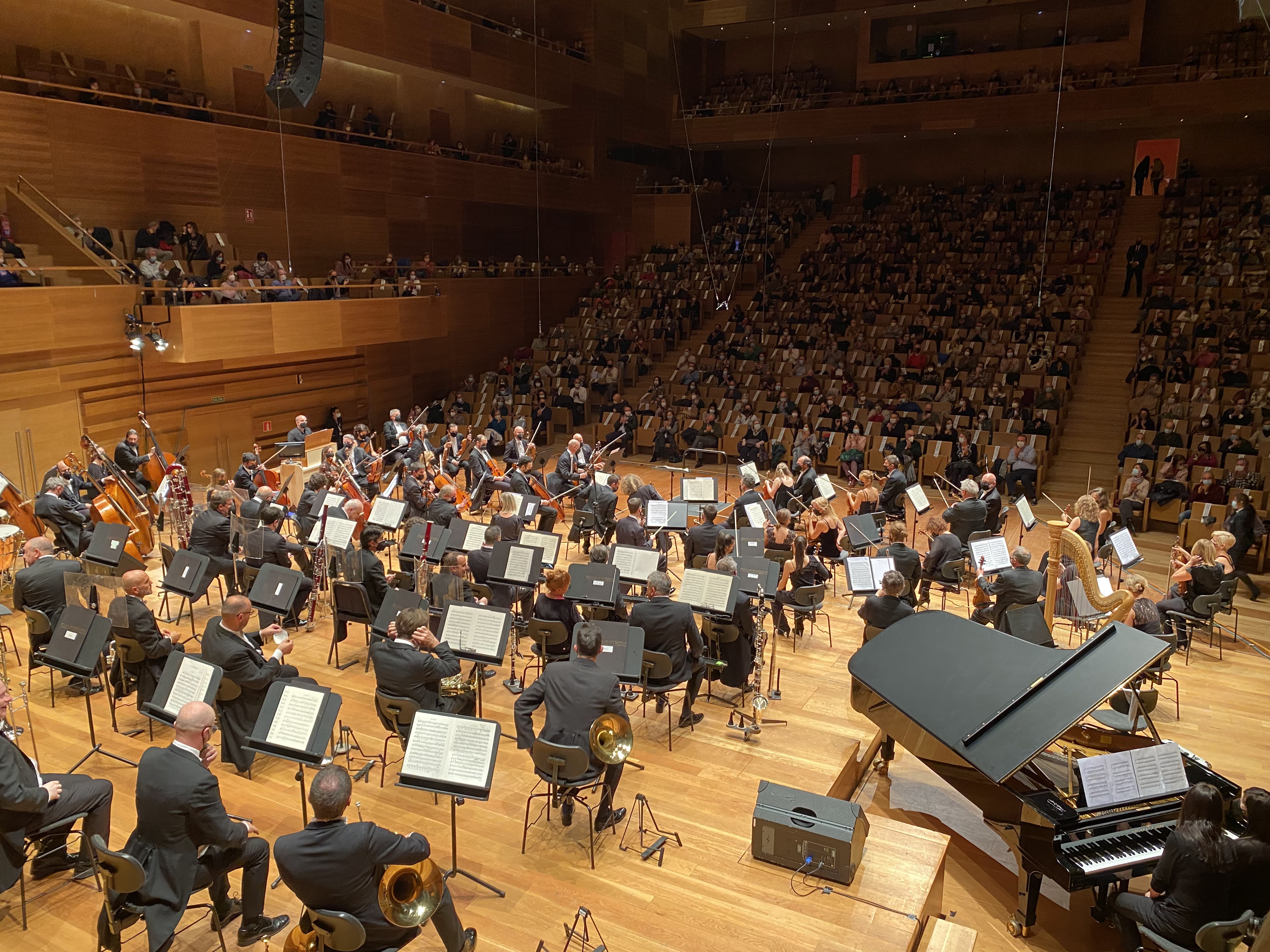 Serios en su frac, los percusionistas aguardan