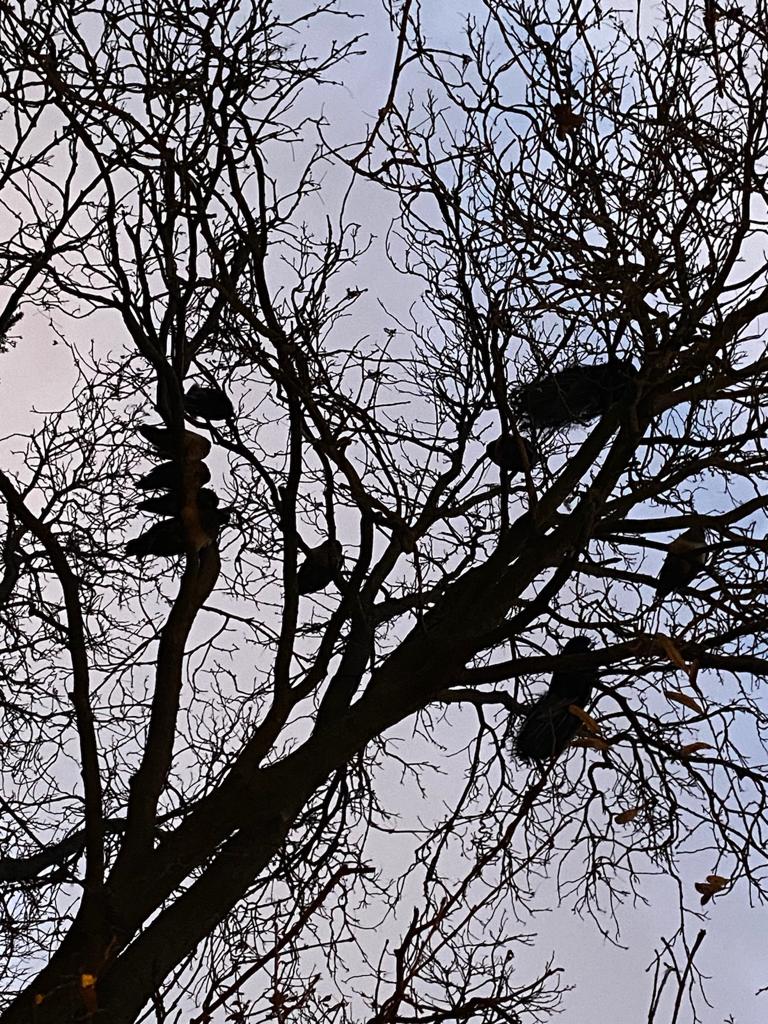 hacia el majestuoso árbol seco lleno de pájaros.