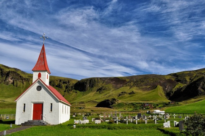 verdes pastos, glaciares, arenas negras,