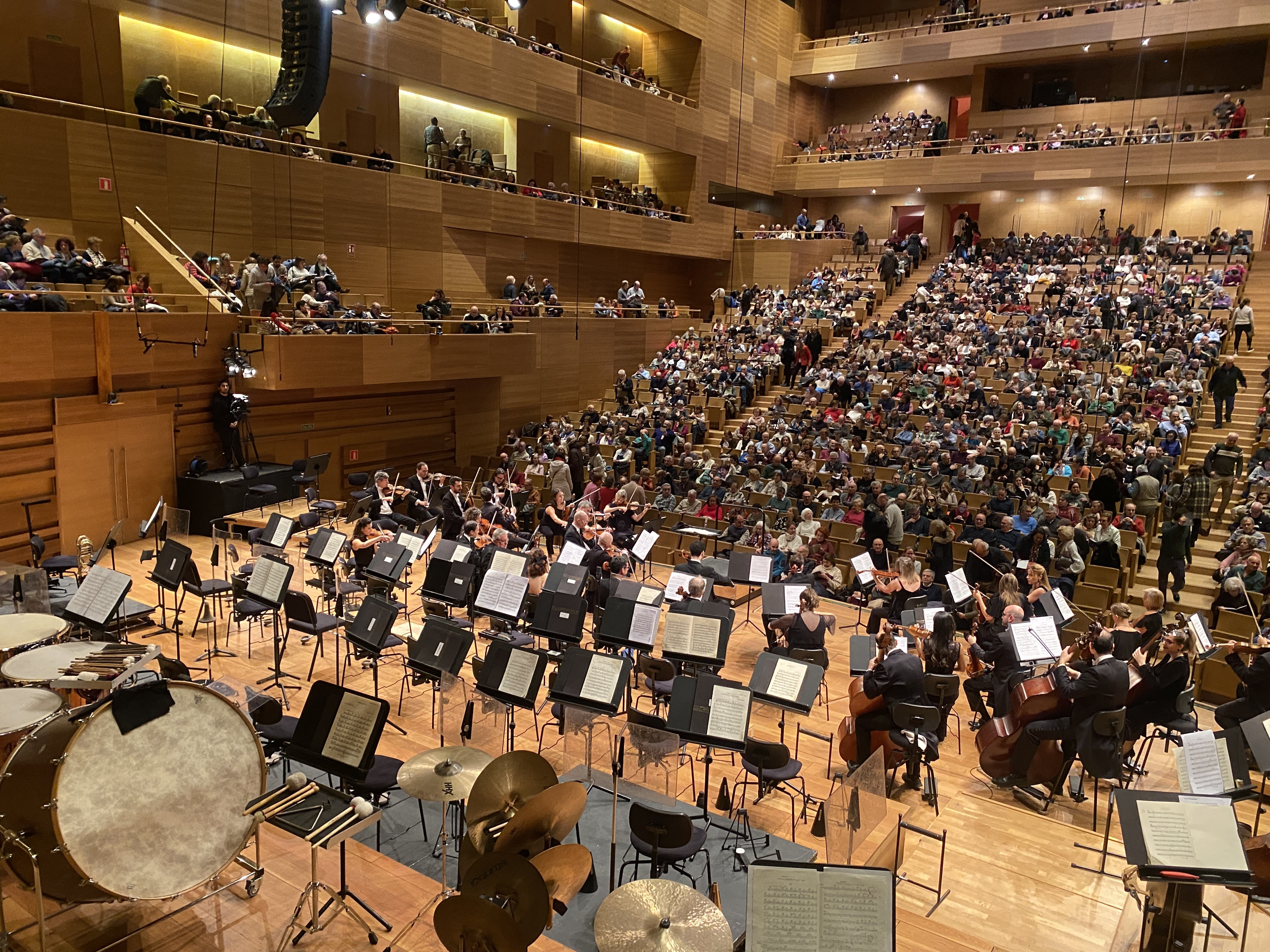 en la espera y el calentamiento musical,