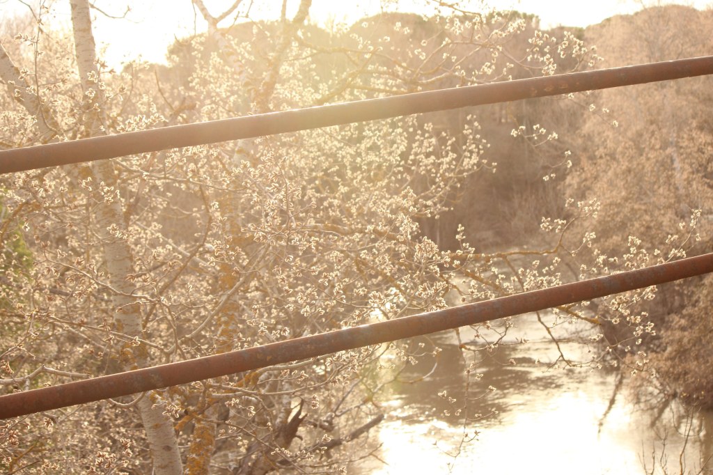 El río a su paso por Tudela es un espejo verde,